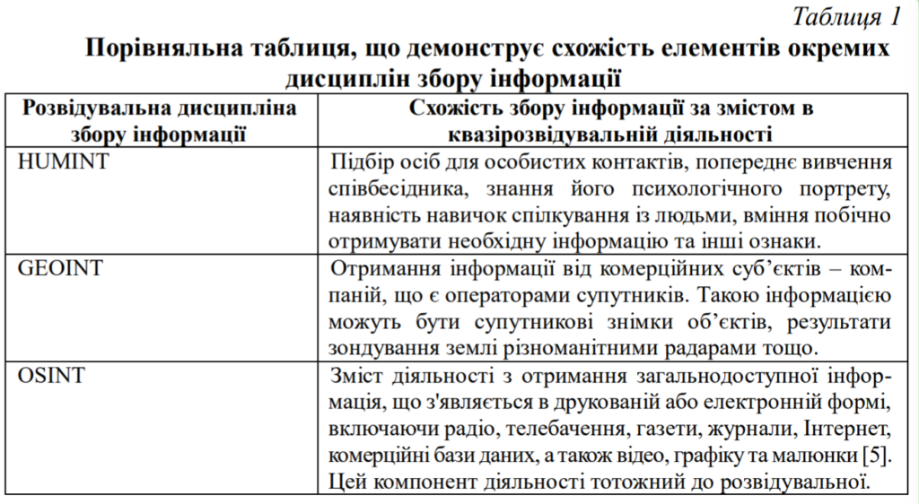 Схожість між розвідувальною та квазірозвідувальною діяльністю у зборі інформації