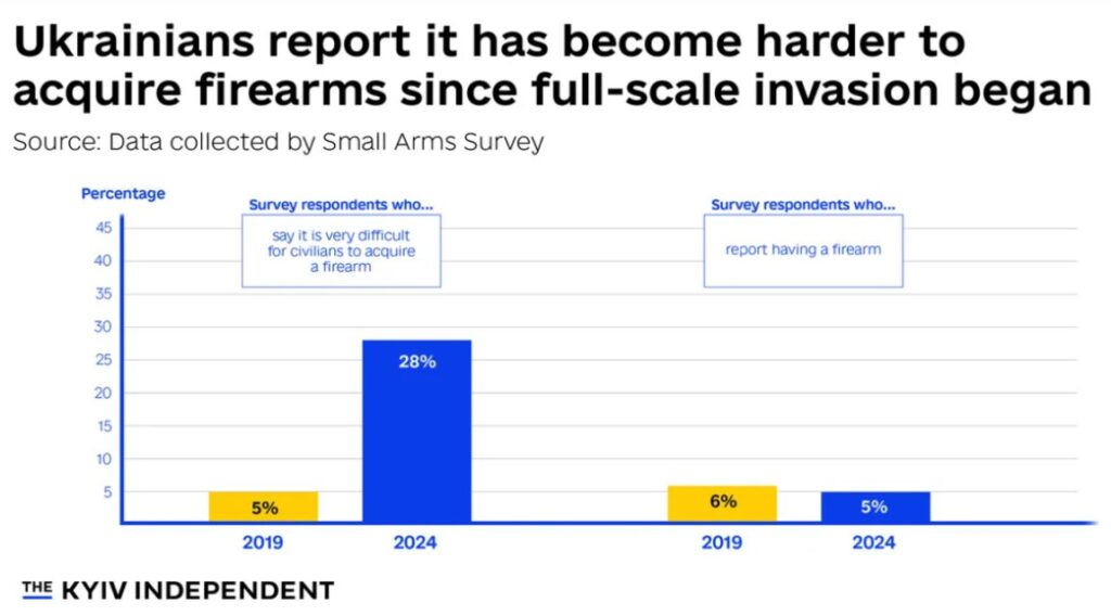 Yet fears — and Russian disinformation — about skyrocketing gun crimes or weapons leaking outside the border have so far failed to materialize. According to research conducted by the Small Arms Survey, access to firearms for the average civilian household has, in fact, decreased since 2022.